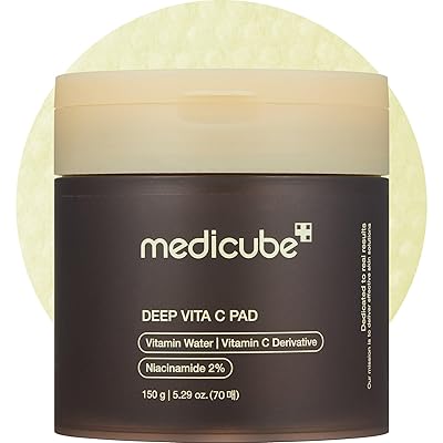medicube Toner Pads Deep Vita C Facial Toner Pad for Uneven Skin Tone & Texture | Vitamin Water and 3 Types of Vitamin, Deeply Hydrating & Resurfacing Pad | Korean Skin Care, 70 Pads 1 Pack