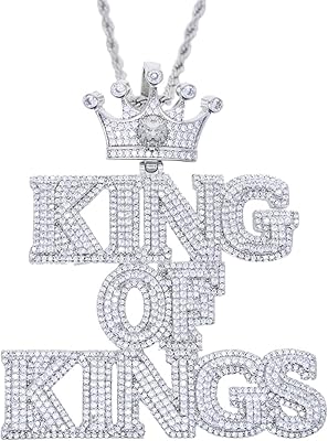 ATJMLADY Iced Out Crown King of Kings Letter Pendant Hip Hop Necklace Rock Punk CZ Big Size Jewelry